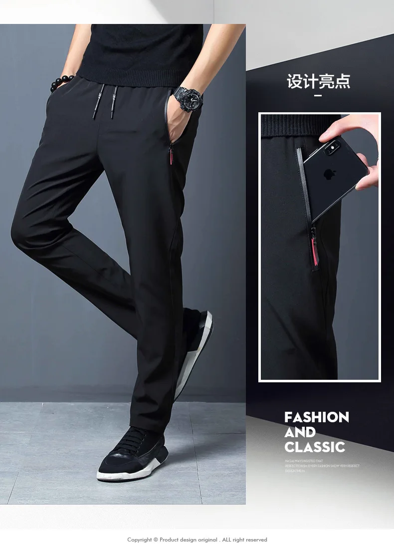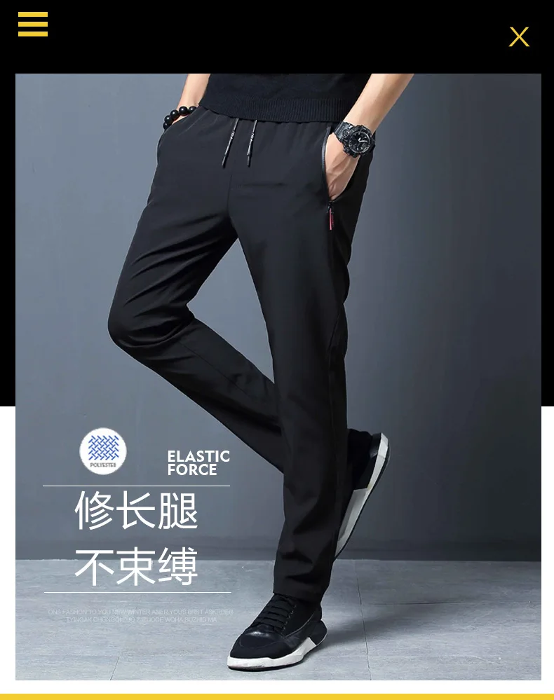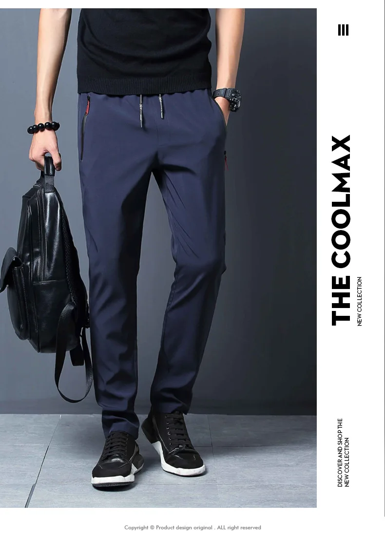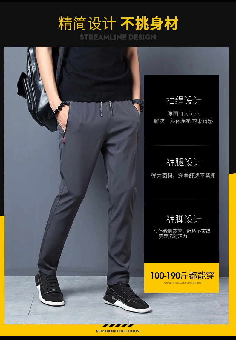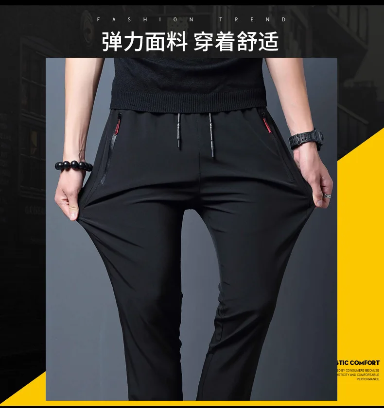 Men's Casual Pants Straight Slim Fit Elastic Waist Jogger Korean Classic Blue Black Gray Male Brand Trousers Plus Size